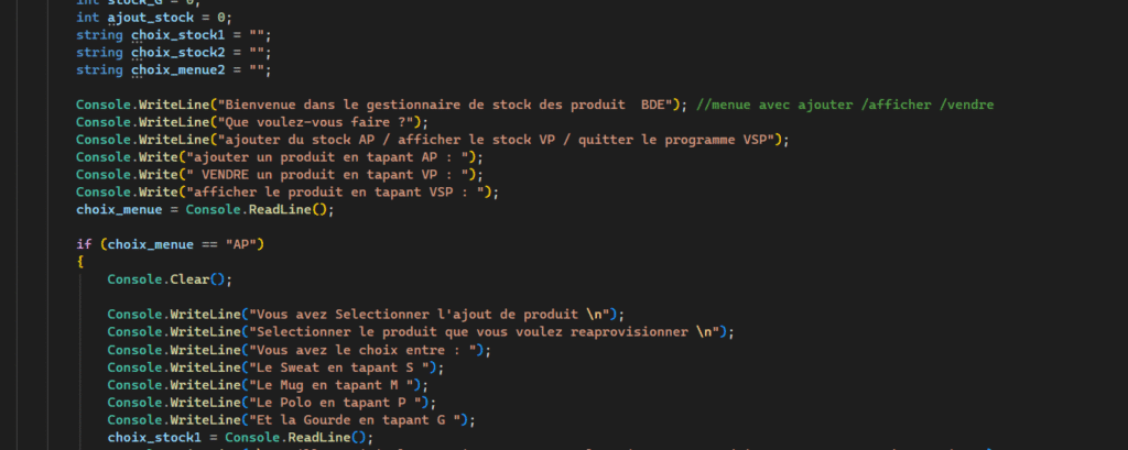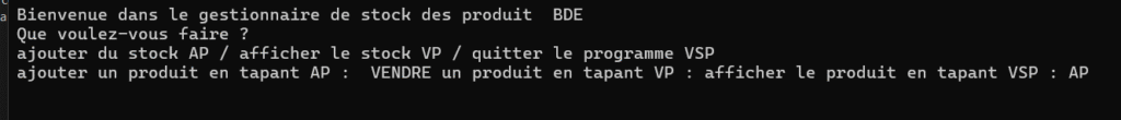 Dans ce contexte, il fallait ajouter la fonction de vente et afficher le stock.
