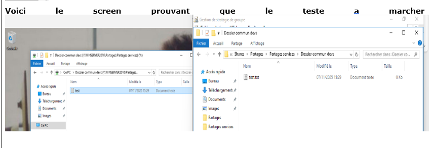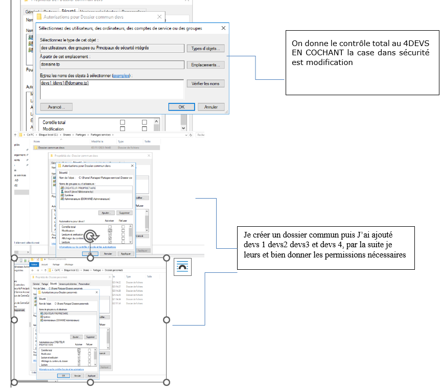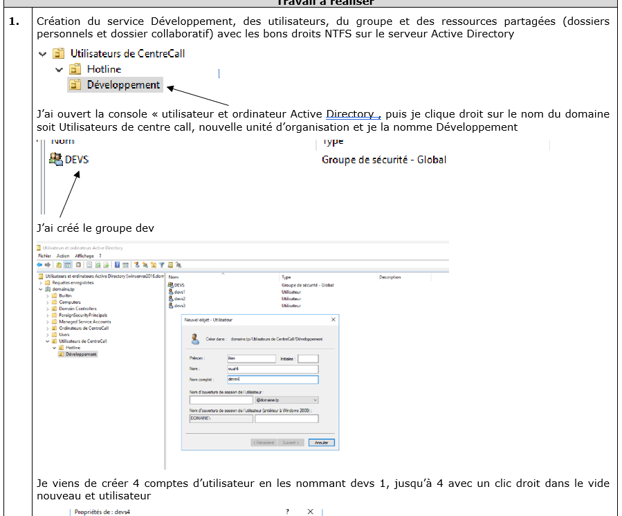 Le but du sujet était d’Intégrer le nouveau service Développement dans l’Active Directory avec les utilisateurs et leurs droits d’accès.
